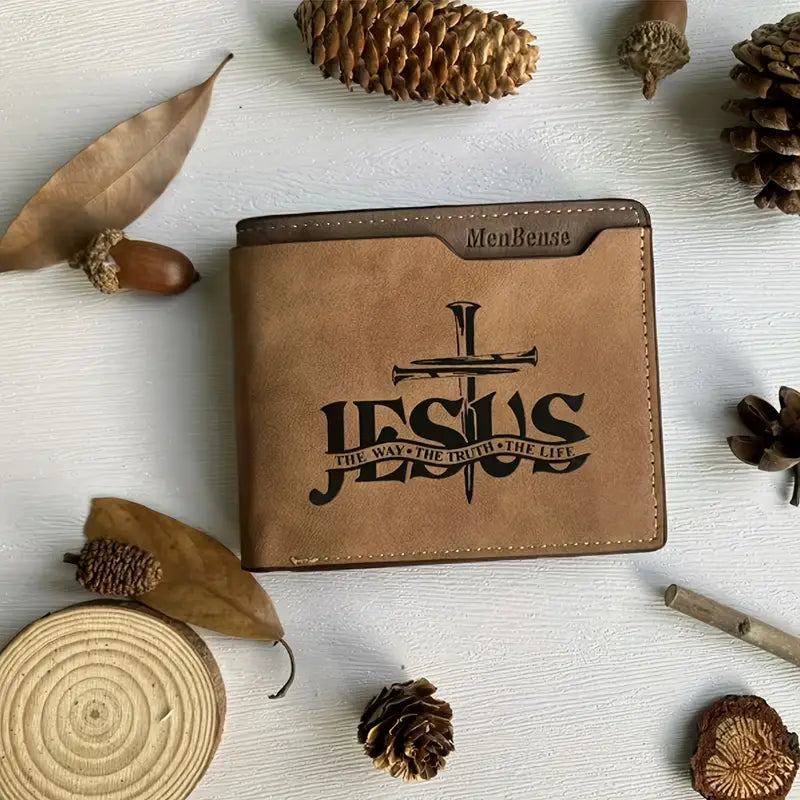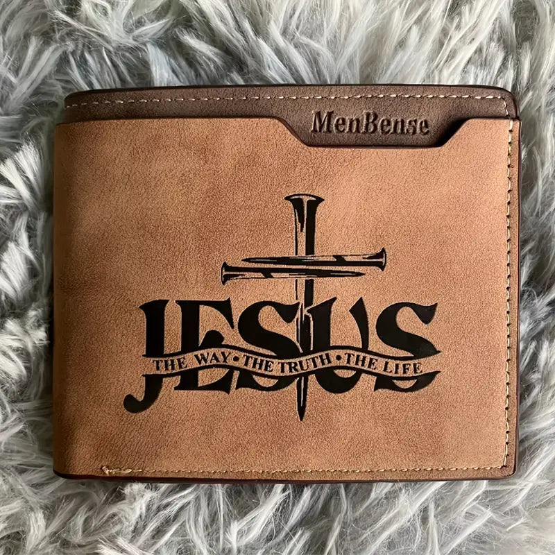👜 Cartera Elegante de Cuero Sintético para Hombre Kasutoo con Diseño de Figura Religiosa